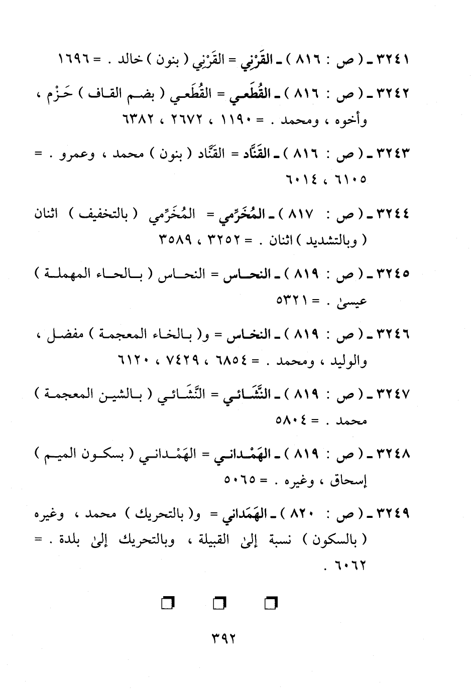 3242 - (ص: 816) - القُطَعي = القُطَعي (بضم القاف) حَزْم، وأخوه، ومحمد. = 1190، 2672، 6382