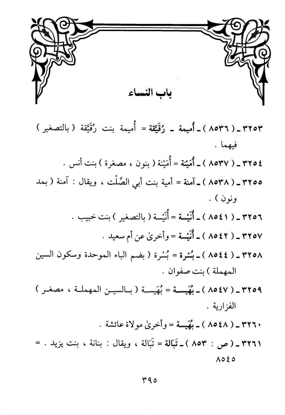3253 - (8536) - أُميمة - رُقَيَّقة = أُميمة بنت رُقَيَّقة (بالتصغير) فيهما.