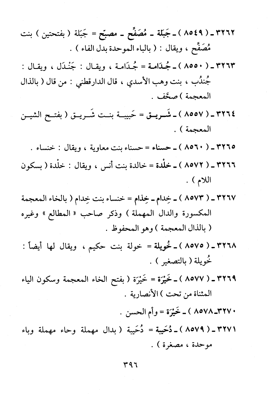3262 - (8549) - جَبلة - مُصَفِّح - مصبحّ = جَبَلة (بفتحتين) بنت مُصَفِّح، ويقال: (بالباء الموحدة بدل الفاء).
