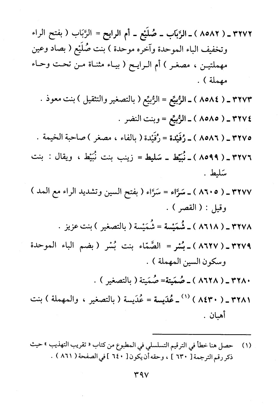 3275 - (8586) - رُفَيْدة = رُفَيْدة (بالفاء، مصغر) صاحبة الخيمة.