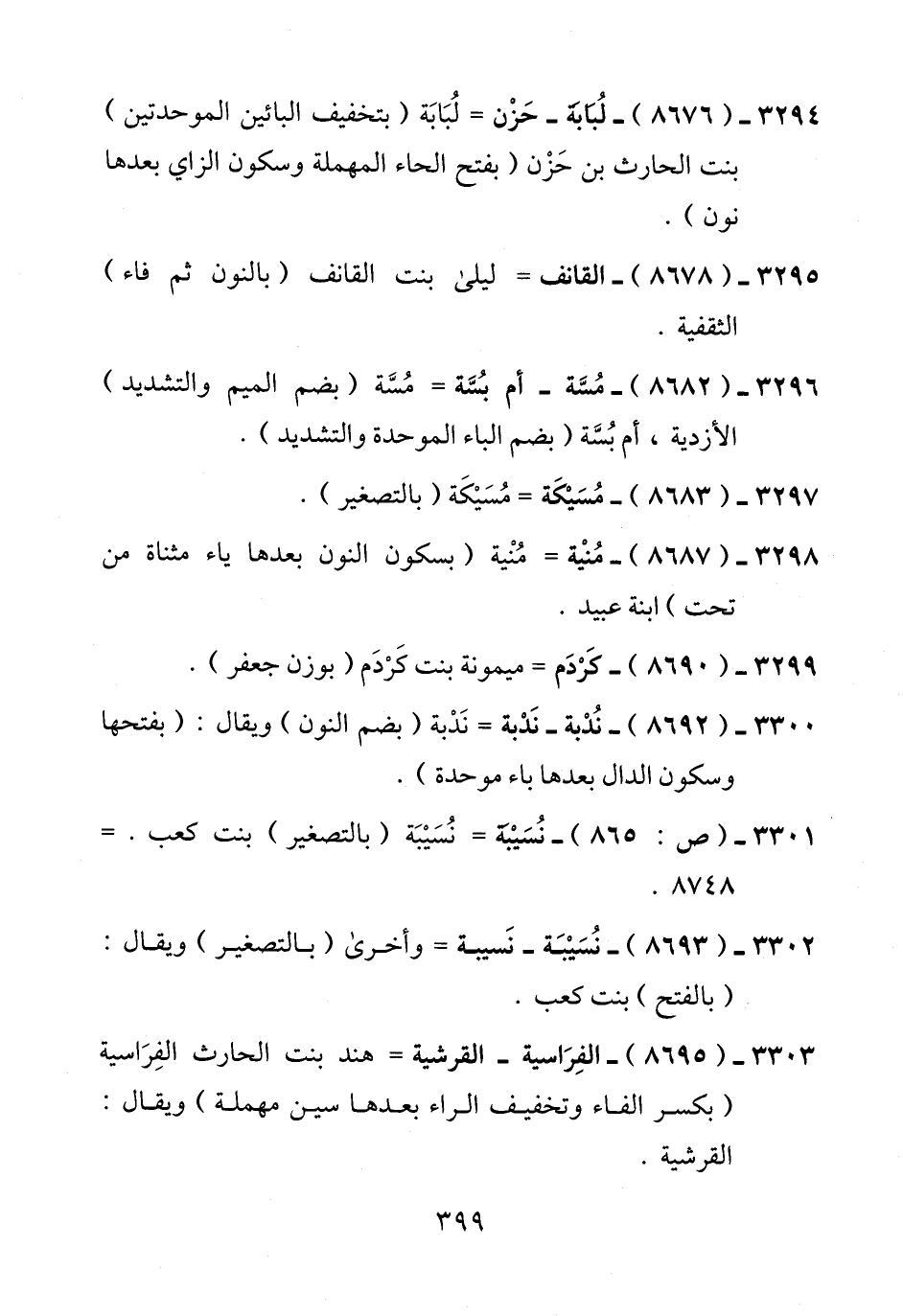 3301 - (ص: 865) - نُسَيْئة = نُسَيْبَة (بالتصغير) بنت كعب. = 8748.