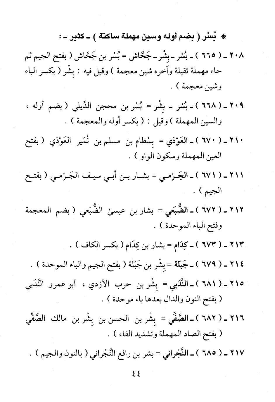 208 - (665) - بُسْر - بشْر- جَحَّاش = بُسْر بن جَحَّاش (بفتح الجيم ثم جاء مهملة ثقيلة وآَخره شين معجمة) وقيل فيه: بِشْر (بكسر الباء وشين معجمة).