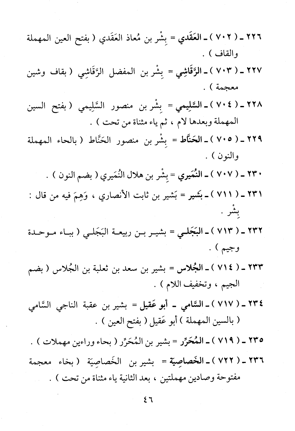 226 - (702) - العَقَدي = بِشْر بن مُعاذ العَقَدي (بفتح العين المهملة والقاف).
