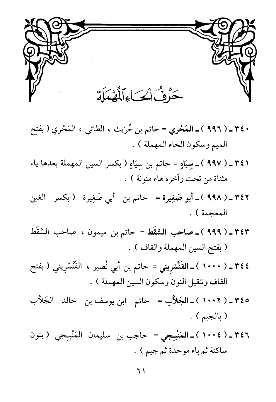 340 - (996) - المَحْري = حاتم بن حُرَيث، الطائي، المَحْري (بفتح الميم وسكون الحاء المهملة).