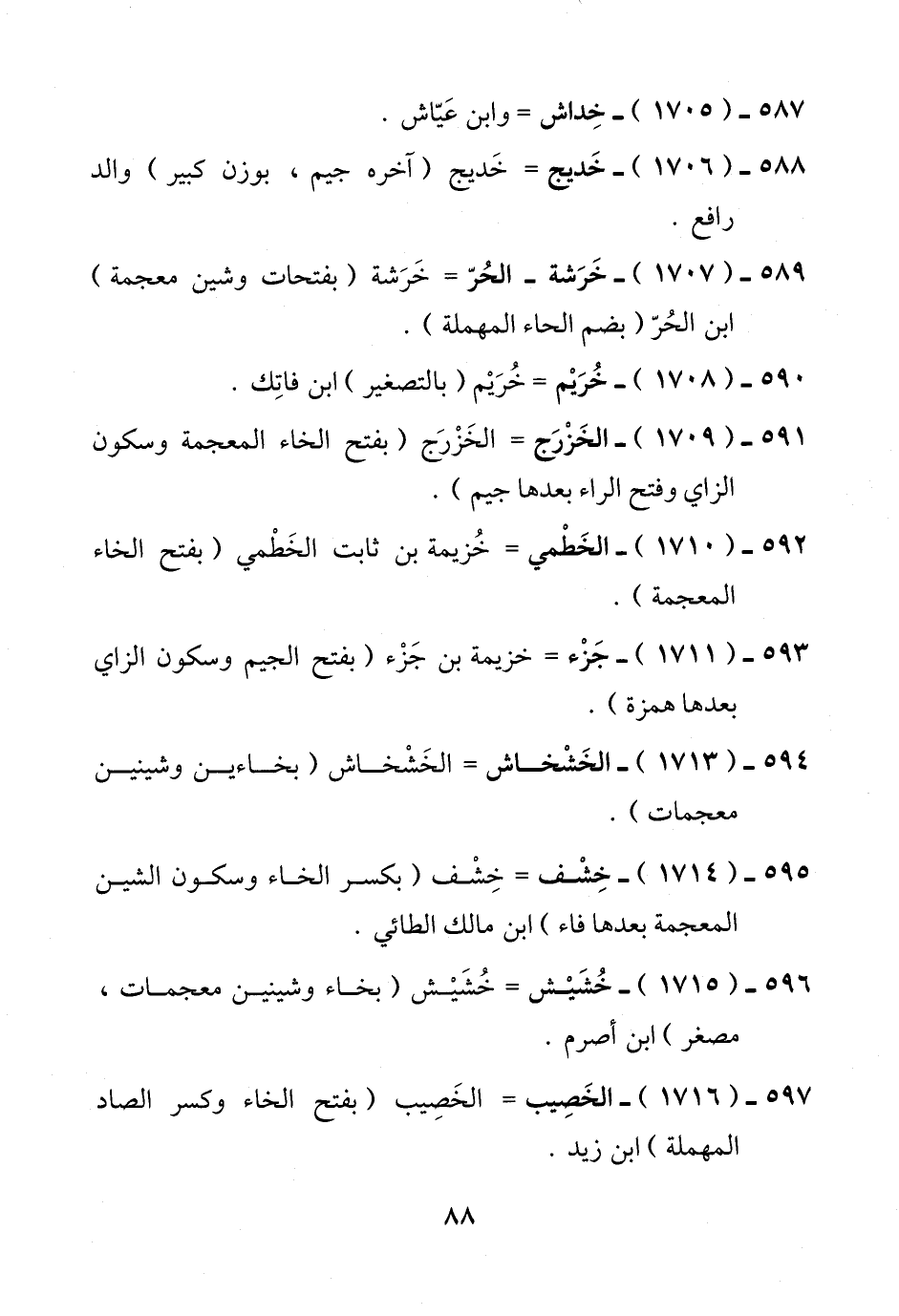 588 - (1706) - خَديج = خَديج (آخره جيم، بوزن كبير) والد رافع.