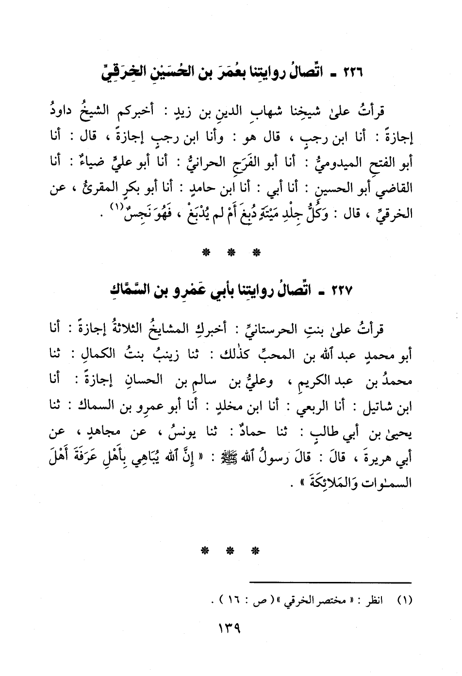 226 - اتِّصالُ روايتِنا بعُمَرَ بن الحُسَيْنِ الخِرَقِيِّ