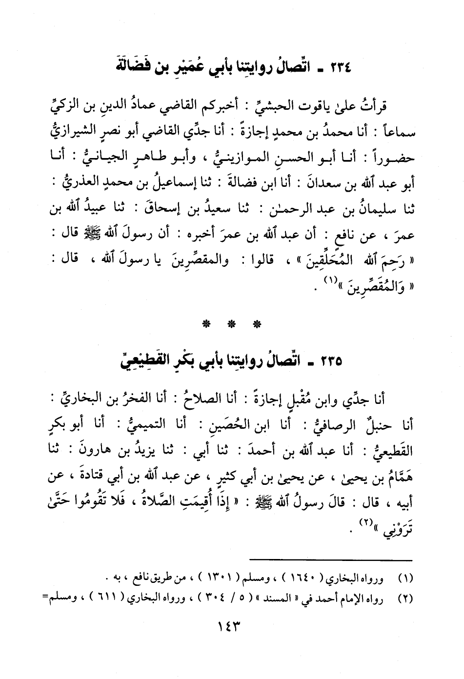 234 - اتِّصالُ روايتِنا بأبي عُمَيْرِ بن فَضَالَةَ