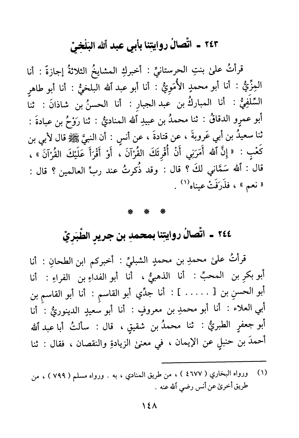 244 - اتِّصالُ روايتِنا بمحمدِ بن جريرٍ الطَّبَرِيِّ