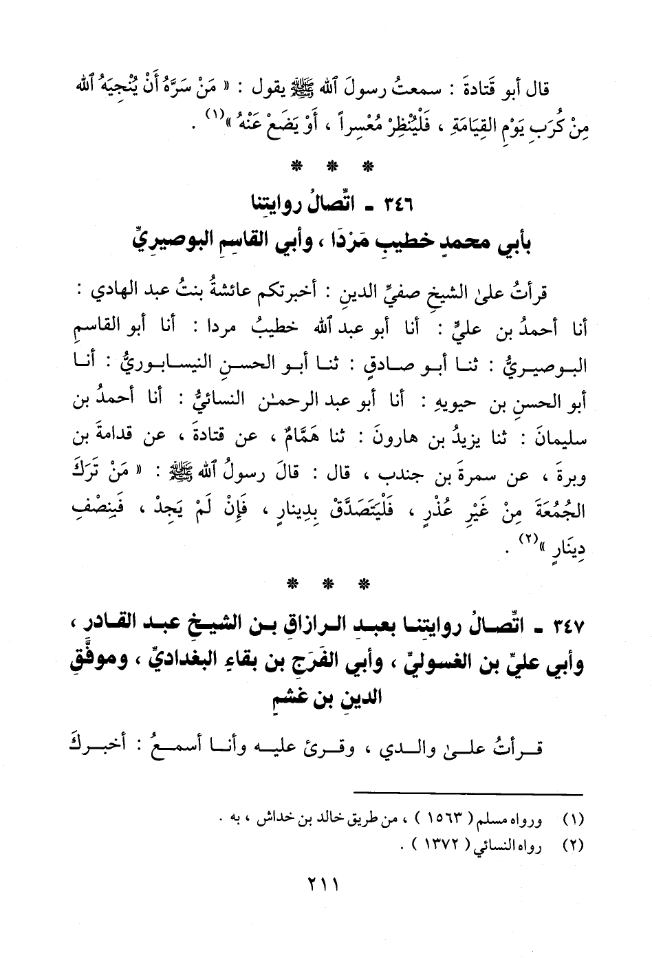 347 - اتِّصالُ روايتِنا بعبدِ الرازاق بن الشيخِ عبد القادر، وأبي عليِّ بن الغسوليِّ، وأبي الفرَجِ بن بقاءِ البغداديِّ، وموفَّقِ الدينِ بن غشمٍ