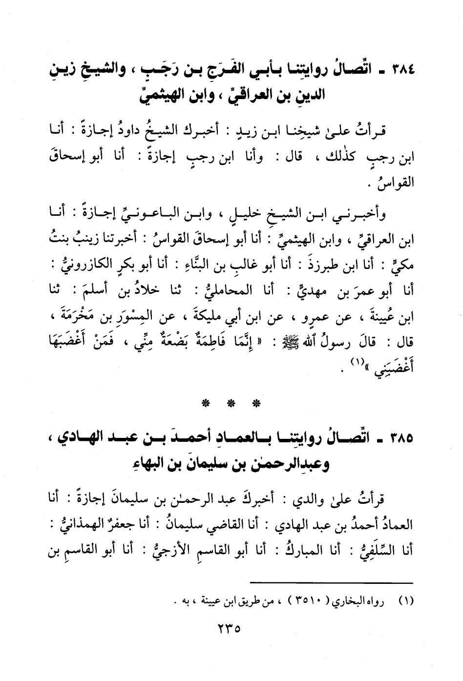 385 - اتِّصالُ روايتِنا بالعمادِ أحمدَ بن عبد الهادي، وعبدِ الرحمن بن سليمانَ بن البهاءِ