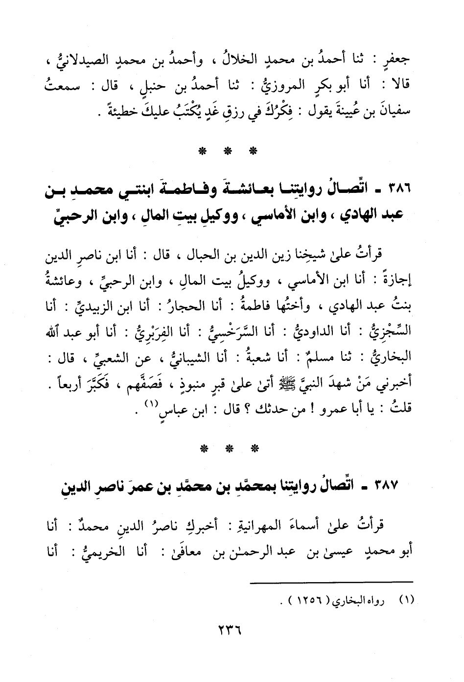 387 - اتِّصالُ روايتِنا بمحمَّدِ بن محمَّدِ بن عمرَ ناصرِ الدينِ