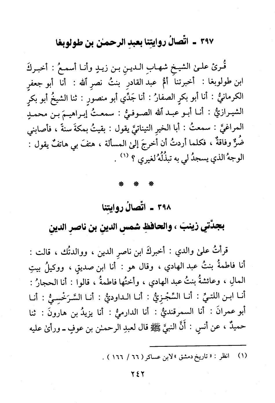 397 - اتِّصالُ روايتِنا بعبدِ الرحمن بن طولوبغا