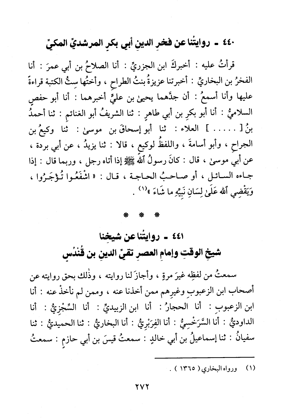 441 - روايتِنا عن شيخنا شيخِ الوقتِ وإمامِ العصرِ تقيِّ الدينِ بن قُنْدُسٍ