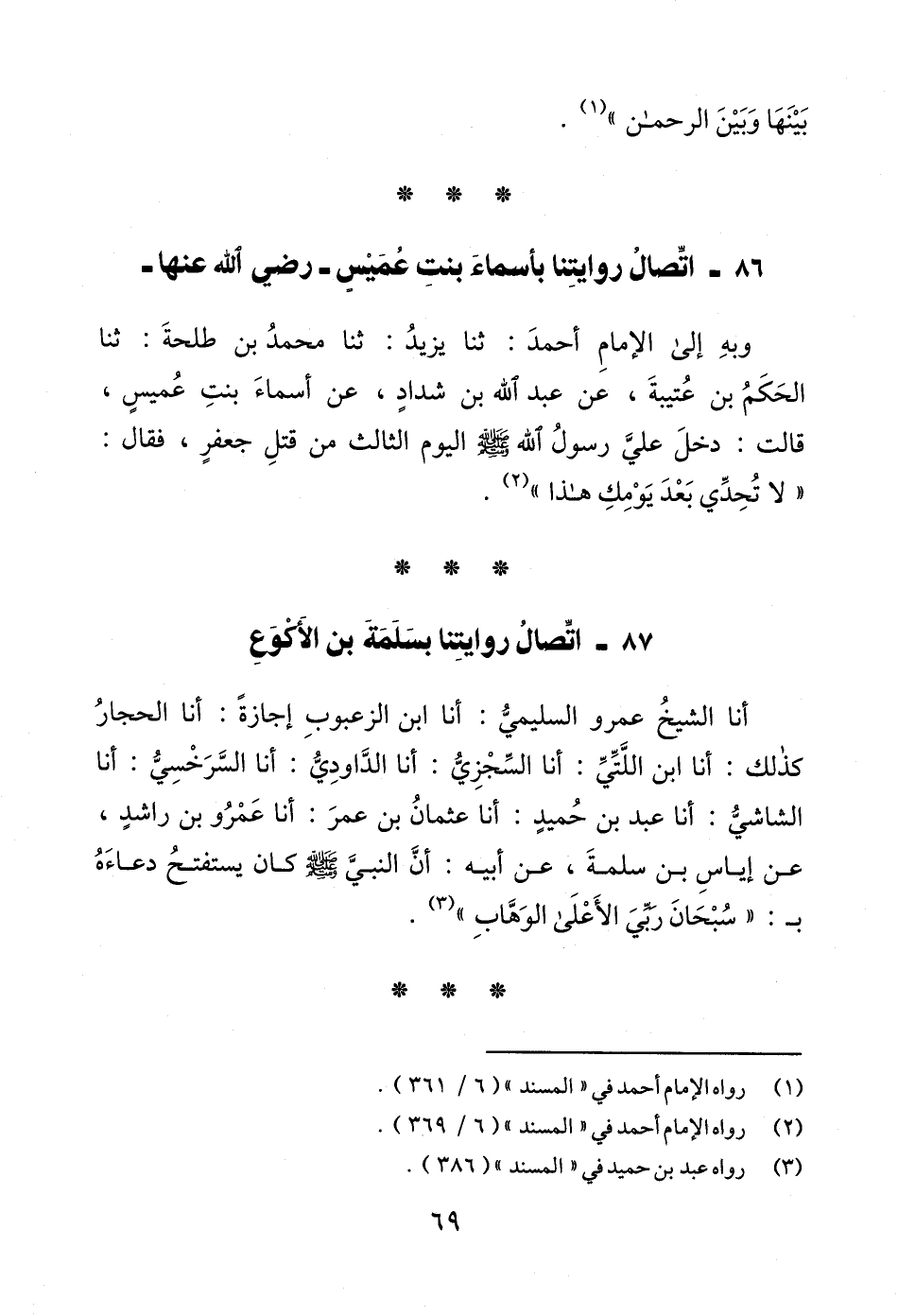 86 - اتِّصالُ روايتِنا بأسماء بنتِ عُمَيْسٍ -رضي الله عنها-
