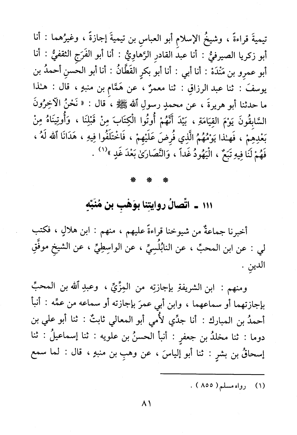 111 - اتّصالُ روايتِنا بوَهْبِ بن مُنَبِّهٍ