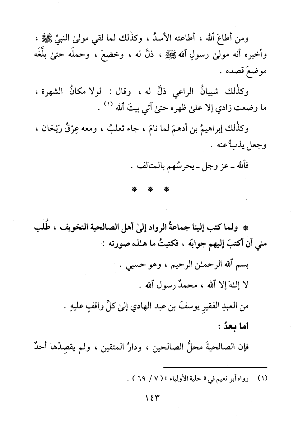 * ولما كتب إلينا جماعةُ الرواد إلى أهل الصالحية التخويف، طُلب مني أن أكتبَ إليهم جوابَه، فكتبتُ ما هذه صورته: