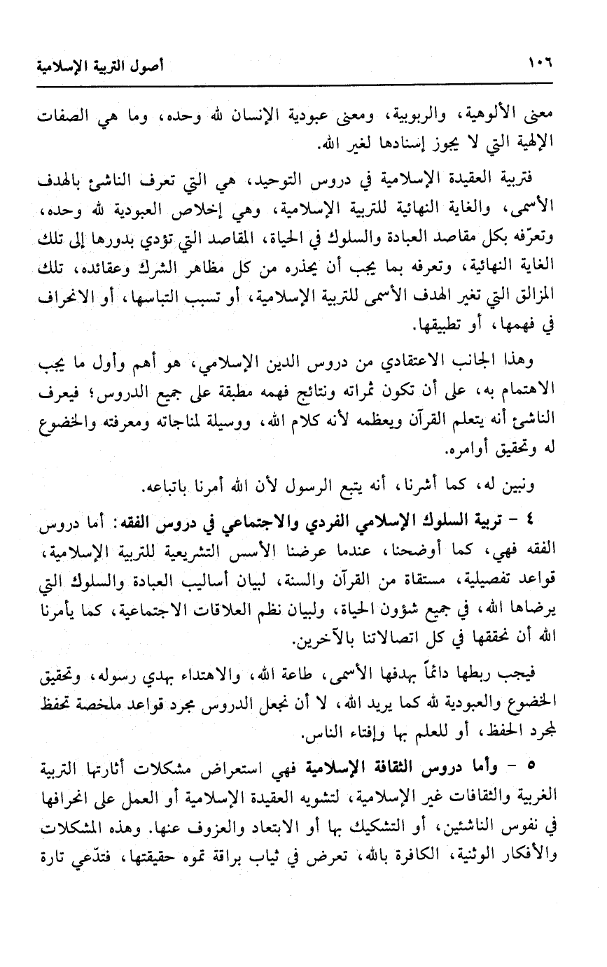 أما دروس الفقه فهي، كما أوضحنا، عندما عرضنا الأسس التشريعية للتربية الإسلامية قواعد تفصيلية، مستقاة من القرآن والسنة، لبيان أساليب العبادة والسلوك التي يرضاها الله، في جميع شئون الحياة، ولبيان نظم العلاقات الاجتماعية، كما يأمرنا الله أن يحققها في كل اتصالاتنا بالآخرين.