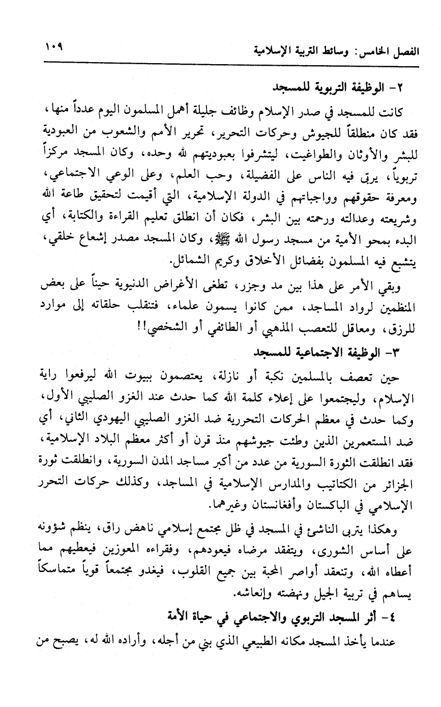 4- أثر المسجد التربوي، والاجتماعي في حياة الأمة: