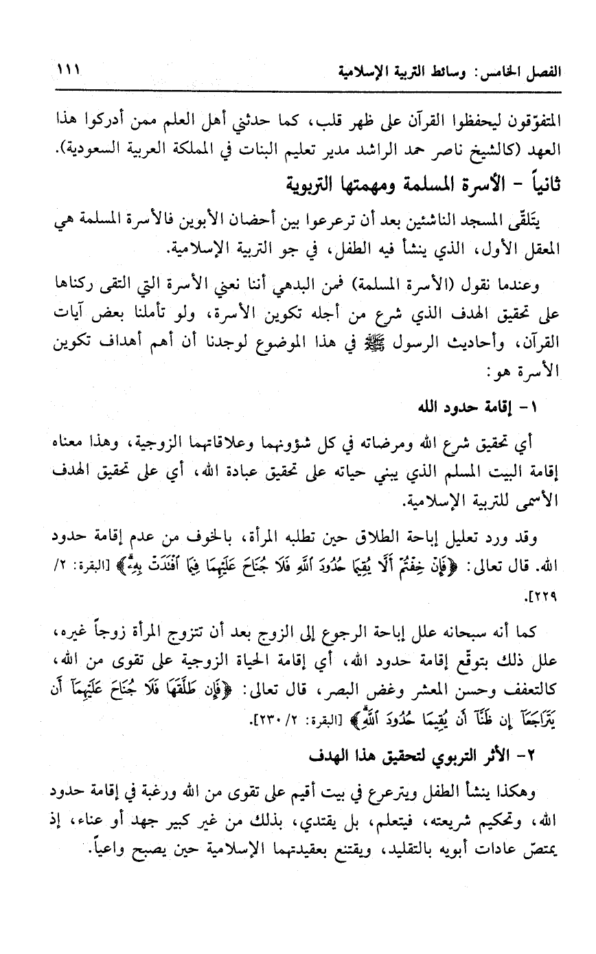 ثانيا: الأسرة المسلمة، ومهمتها التربوية