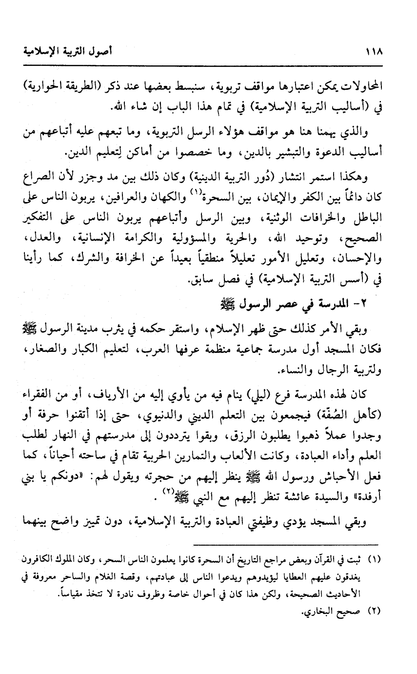2- المدرسة في عصر الرسول صلى الله عليه وسلم: