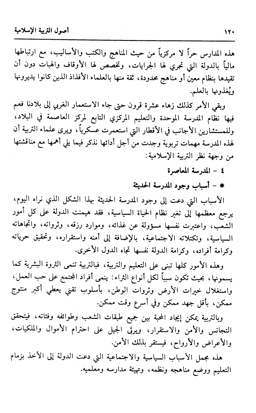 وبقي الأمر كذلك زهاء عشرة قرون حتى جاء الاستعمار الغربي إلى بلادنا، فعم فيها نظام المدرسة الموحدة، والتعليم المركزي التابع لمركز العاصمة في البلاد، وللمستشارين الأجانب في الأقطار التي استعمرت عسكريا، ويرى علماء التربية أن لهذه المدرسة مهمات تربوية وجدت من أجل أدائها تذكر فيما يلي أهمها مع مناقشتها من وجهة النظر التربية الإسلامية:
