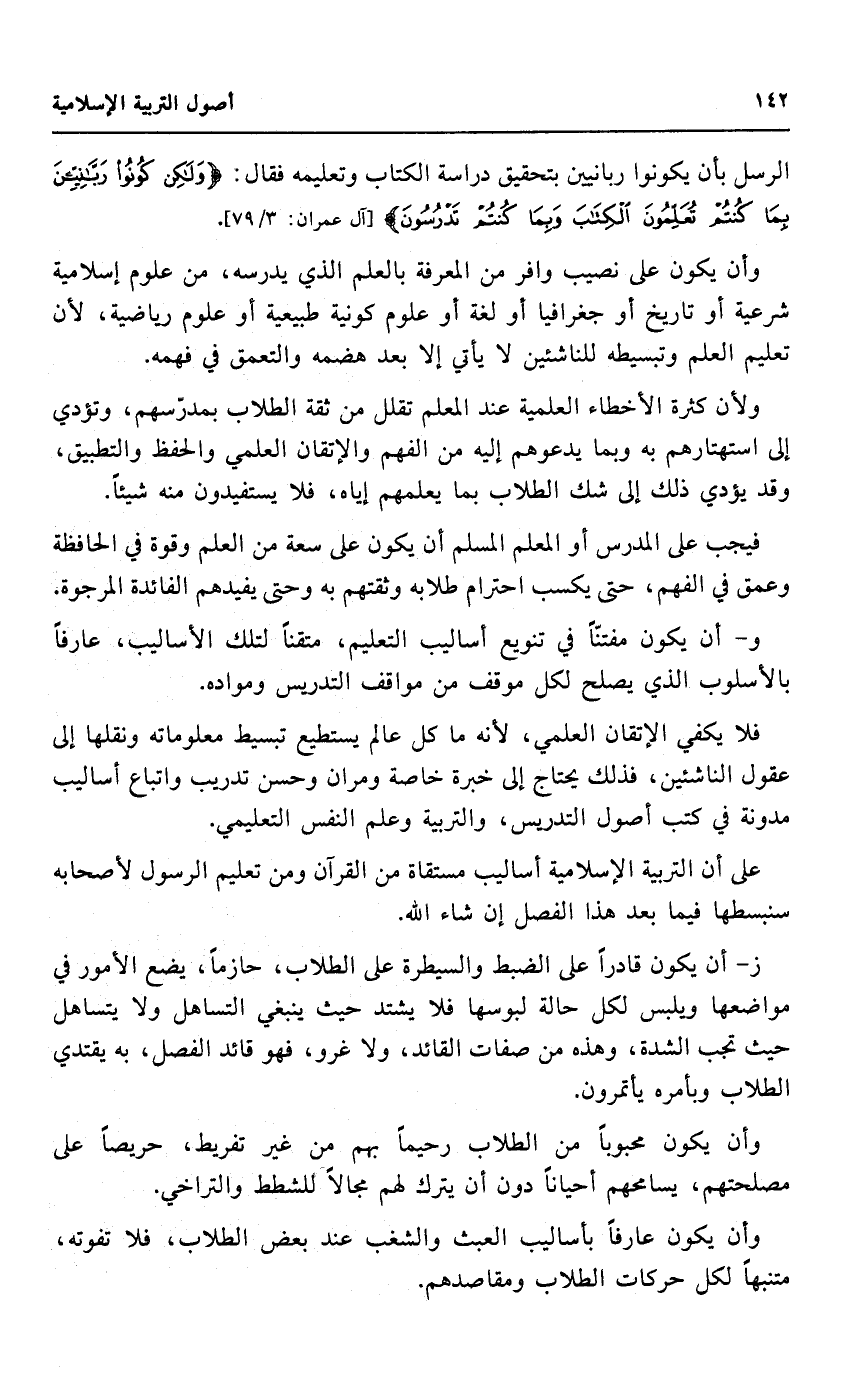 على أن التربية الإسلامية أساليب مستقاة من القرآن، ومن تعليم الرسول لأصحابه سنبسطها فيما بعد هذا الفصل إن شاء الله.