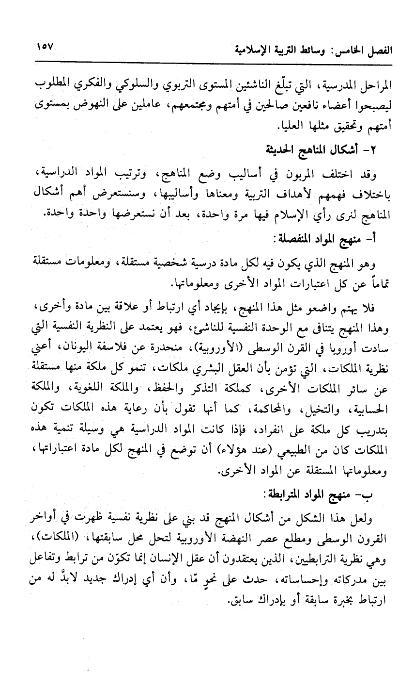 وقد اختلف المربون في أساليب وضع المناهج، وترتيب المواد الدراسية، باختلاف فهمهم لأهداف التربية ومعناها وأساليبها، وسنستعرض أهم أشكال المناهج لنرى رأي الإسلام فيها مرة واحدة، بعد أن نستعرضها واحدة واحدة.