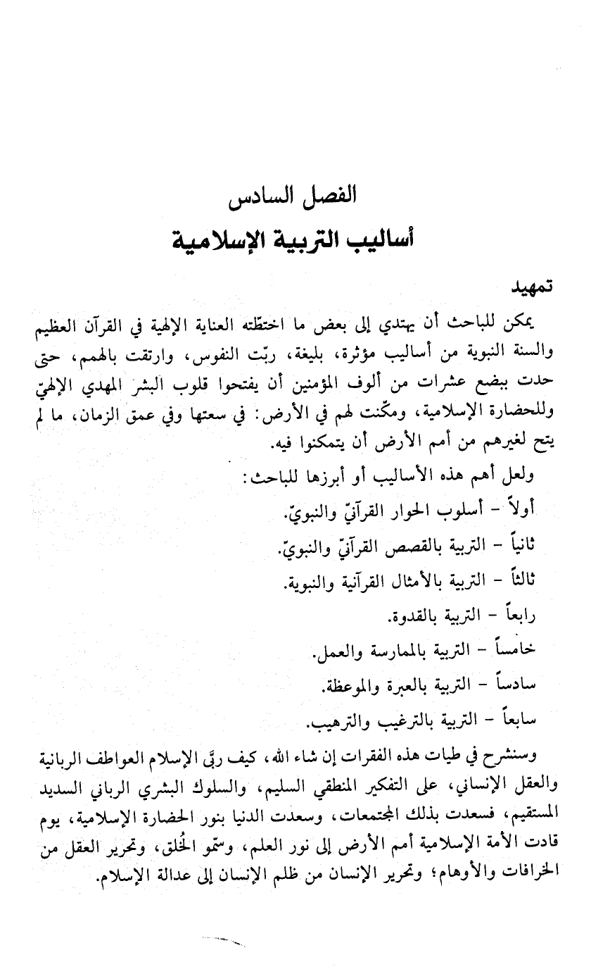 يمكن للباحث أن يهتدي إلى بعض ما اختطته العناية الإلهية في القرآن العظيم، والسنة النبوية من أساليب مؤثرة، بليغة، ربت النفوس، وارتقت بالهمم، حتى حدت ببضع عشرات من ألوف المؤمنين أن يفتحوا قلوب البشر المهدي الإلهي، وللحضارة الإسلامية، ومكنت لهم في الأرض: في سعتها وفي عمق الزمان، ما لم يتح لغيرهم من أمم الأرض أن يتمكنوا فيه.
