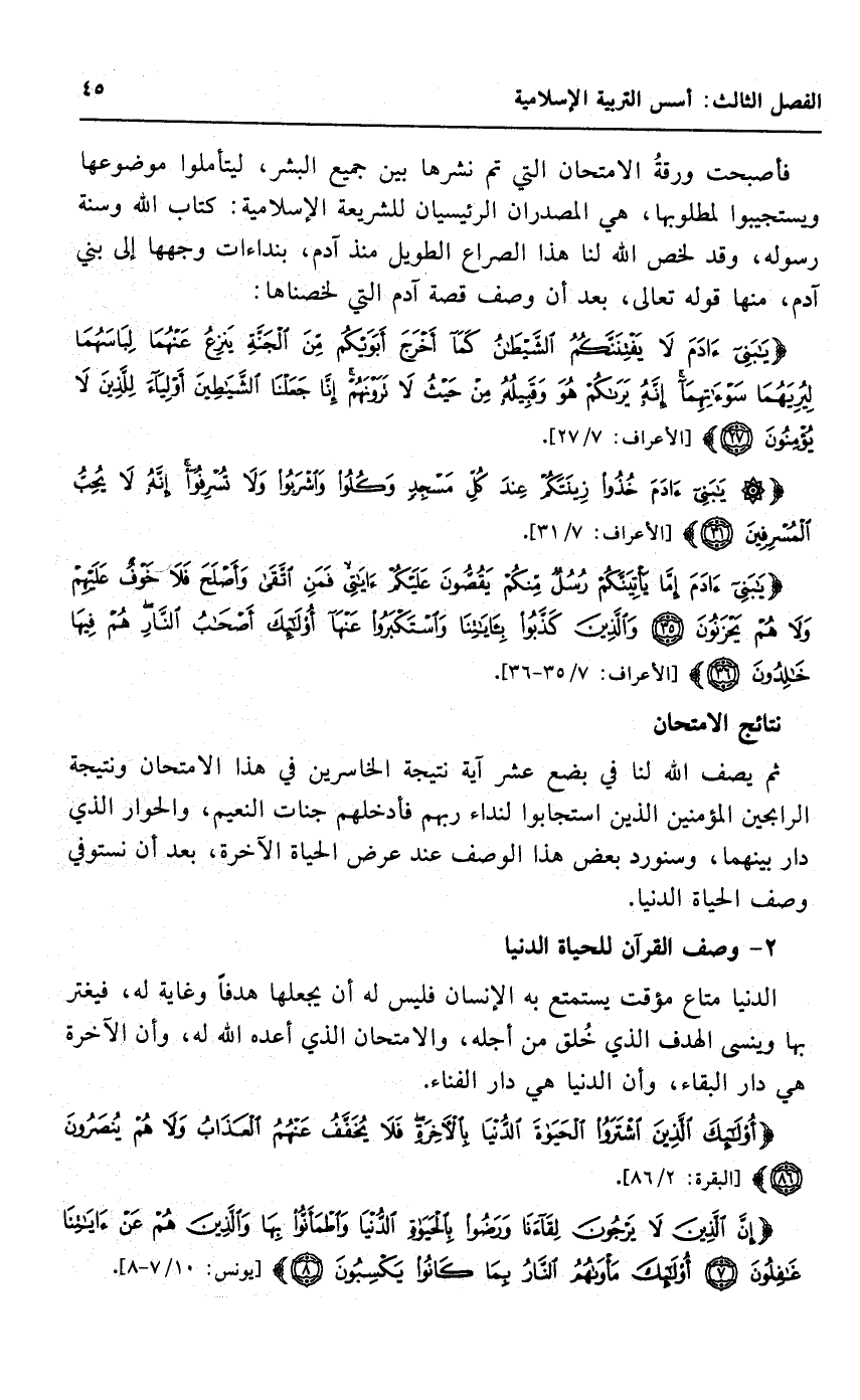 ثم يصف الله لنا في بضع عشر آية نتيجة الخاسرين في هذا الامتحان، ونتيجة الرابحين المؤمنين الذين استجابوا لنداء ربهم، فأدخلهم جنات النعيم، والحوار الذي دار بينهما، وسنورد بعض هذا الوصف عند عرض الحياة الآخرة، بعد أن نستوفي وصف الحياة الدنيا.