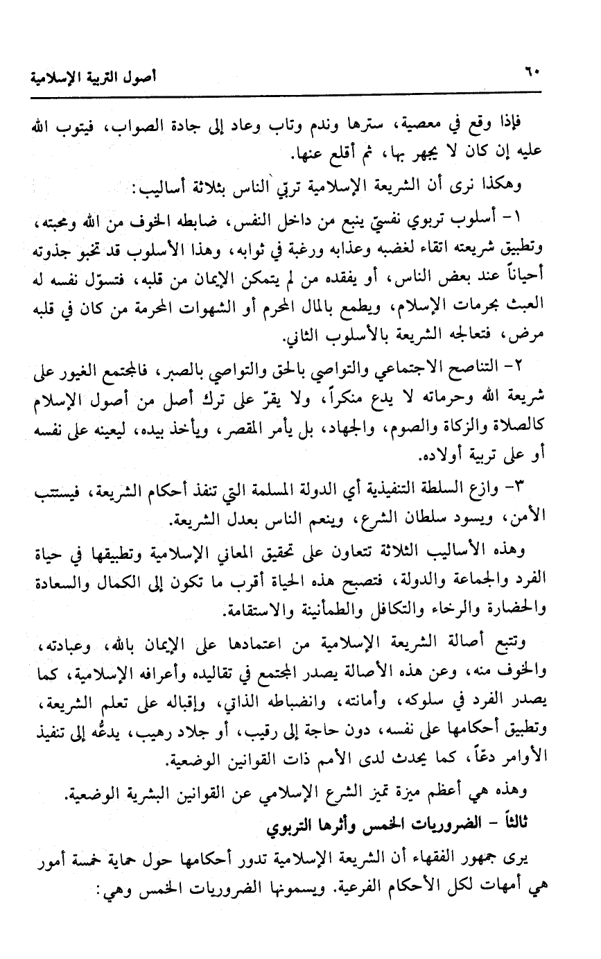 وهكذا نرى أن الشريعة الإسلامية تربي الناس بثلاثة أساليب: