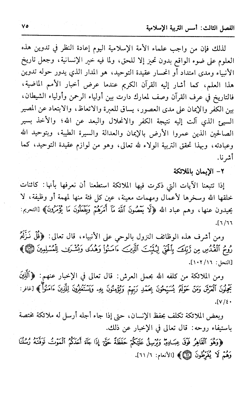 لذلك فإن من واجب علماء الأمة الإسلامية اليوم إعادة النظر في تدوين هذه العلوم على ضوء الواقع بدون تحيز إلا للحق، ولما فيه خير الإنسانية، وجعل تاريخ الأنبياء، ومدى امتداد، أو انحسار عقيدة التوحيد، هو المدار الذي يدور حوله تدوين هذا العلم، كما أشار إليه القرآن الكريم عندما عرض أخبار الأمم الماضية، فالتاريخ في عرف القرآن وصف لمعارك دارت بين أولياء الرحمن، وأولياء الشيطان، بين الكفر والإيمان على مدى العصور، يساق للعبرة والاتعاظ، والابتعاد عن المصير السيئ الذي آلت إليه نتيجة الكفر، والانحلال والبعد عن الله؛ والأخذ بسير الصالحين الذين عمروا الأرض بالإيمان، والعدالة والسيرة الطيبة، وبتوحيد الله وعبادته، وبهذا تحقق التربية الولاء لله تعالى، وهو من لوازم عقيدة التوحيد، كما أشرنا.