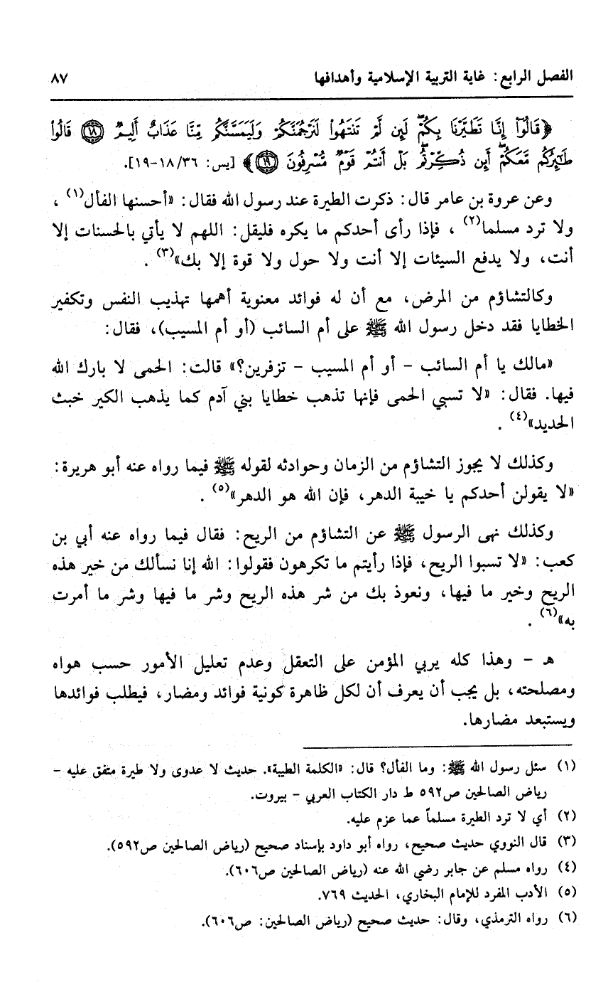 1 سئل رسول الله صلى الله عليه وسلم: وما الفأل؟ قال: "الكلمة الطيبة". حديث لا عدوى ولا طيرة متفق عليه -رياض الصالحين ص592 ط دار الكتاب العربي- بيروت.