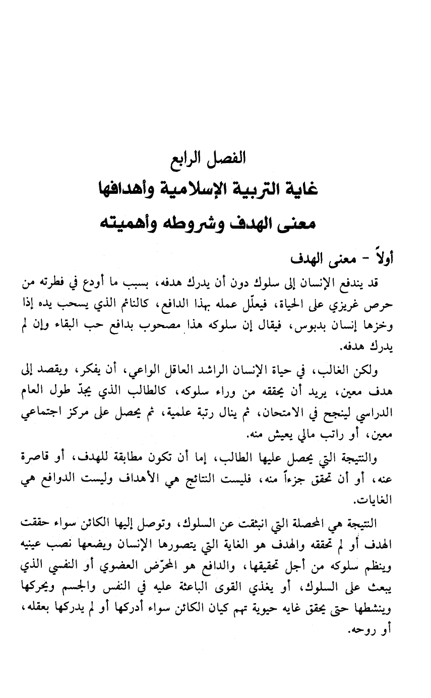 الفصل الرابع: غاية التربية الإسلامية وأهدافها