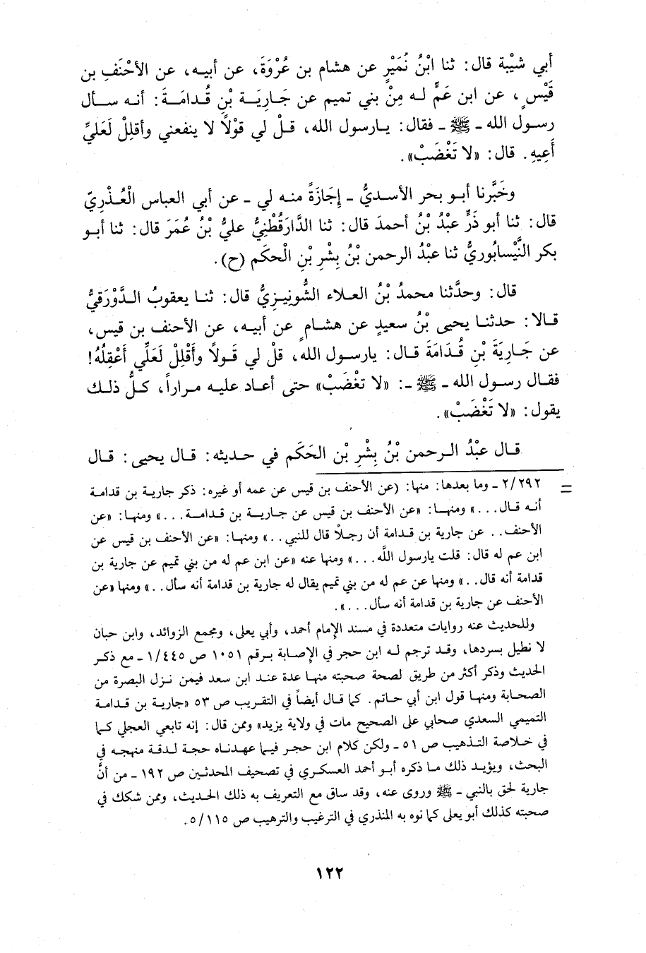 قَرَأْتُ عَلَى أَبِي بَكْرٍ مُحَمَّدُ بْنُ عَبْدِ اللَّهِ النَّاقِدُ أَخْبَرَكَ أَبُو الْحَسَنِ مُبَارَكُ بْنُ عَبْدِ الْجَبَّارِ الصَّيْرَفِيُّ فَأَقَرَّ بِهِ قَالَ ثَنَا أَبُو الْحَسَنِ عَلِيُّ بْنُ مُحَمَّدٍ السِّمْسَارُ قَالَ ثَنَا مُحَمَّدُ بْنُ مُظَفَّرٍ ثَنَا مُحَمَّدُ بْنُ الْحُسَيْنِ الْخَثْعَمِيُّ قَالَ ثَنَا أَبُو سَبْرَةَ ثَنَا مُحَمَّدُ بْنُ عَبْدِ الرَّحْمَنِ ثَنَا مُطَرِّفٌ عَنْ مَالِكٍ عَنِ ابْنِ شِهَابٍ عَنْ حُمَيْدٍ عَنْ أَبِي هُرَيْرَةَ أَنَّ رَجُلا سَأَلَ رَسُولَ اللَّهِ صَلَّى اللَّهُ عَلَيْهِ وَسَلَّمَ فَقَالَ يَا رَسُولَ اللَّهِ عَلِّمْنِي كَلِمَاتٍ أَعِيشُ بِهِنَّ وَلا تُكْثِرْ عَلَيَّ فَأَنْسَى فَقَالَ رَسُولُ اللَّهِ صَلَّى اللَّهُ عَلَيْهِ وَسَلَّمَ لَا تَغْضَبْ