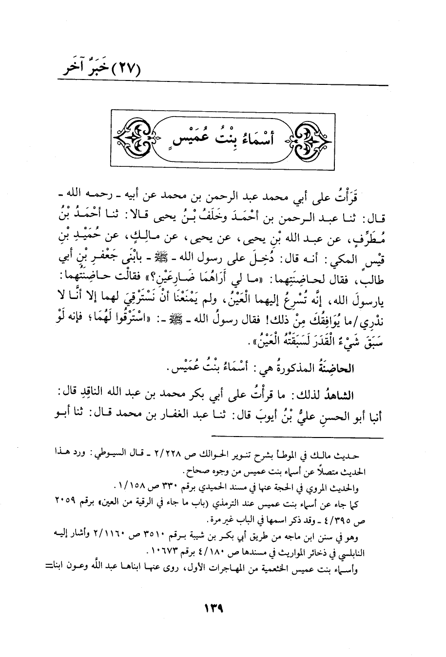 أنباه أَبُو مُحَمَّدِ بْنُ عَتَّابٍ عَنْ أَبِي عَمْرٍو وَعُثْمَانَ بْنِ أَبِي بَكْرٍ قَالَ أنبا ابْنُ بِشْرَانَ قَالَ ثَنَا مُحَمَّدُ بْنُ عَبْدِ اللَّهِ الْفَاكِهِيُّ عَنِ ابْنِ مَسَرَّةَ وَقِيلَ هِيَ أُمُّ هانىء وَالله أعلم