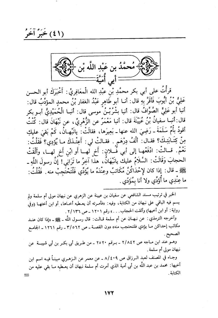 أَنا أَبُو بَكْرٍ مُحَمَّدُ بْنُ عَبْدِ اللَّهِ النَّاقِدُ قَالَ أناأبو عَبْدِ اللَّهِ الطَّبَرِيُّ بِمَكَّةَ عَنْ عبد الغافر بن مُحَمَّد بن بشر بن أَحْمد الإسفرايني عَن دَاوُد ابْن الْحُصَيْنِ عَنْ يَحْيَى بْنِ يَحْيَى يَعْنِي التَّمِيمِيَّ قَالَ أَنْبَأَ سُفْيَانُ بن عُيَيْنَة عَن إِسْحَاق ابْنُ عَبْدِ اللَّهِ بْنِ أُبَيِّ طَلْحَة أَنه يَعْنِي التَّمِيمِيَّ قَالَ أَنْبَأَ سُفْيَانُ بْنُ عُيَيْنَةَ عَنْ إِسْحَاقَ بْنِ عَبْدِ اللَّهِ بْنِ أَبِي طَلْحَةَ أَنَّهُ سَمِعَ أَنَسَ بْنَ مَالِكٍ يَقُولُ صَلَّيْتُ أَنَا وَسَلِيمٌ فِي بَيْتِنَا خَلْفَ رَسُولِ اللَّهِ صَلَّى اللَّهُ عَلَيْهِ وَسَلَّمَ وَالْعَجُوزُ مِنْ وَرَائِنَا
