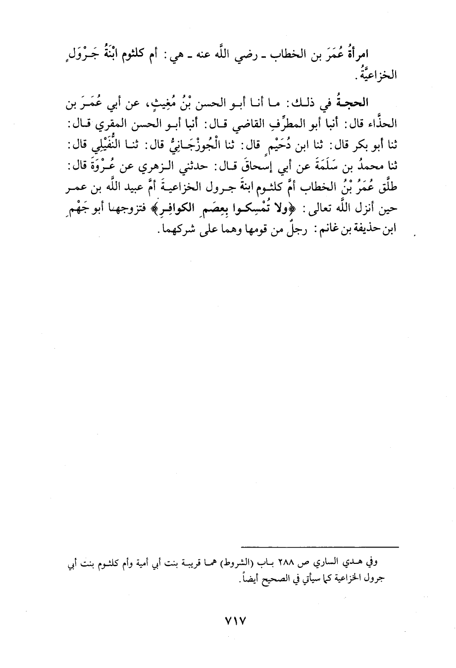 أنبا أَبُو مُحَمَّدِ بْنُ عَتَّابٍ عَنْ أَبِي حَفْصٍ الذُّهْلِيِّ قَالَ ثَنَا ابْنُ فُطَيْسٍ الْقَاضِي قَالَ أنبا عَبْدُ اللَّهِ بْنُ مُحَمَّدِ بْنِ عَلِيٍّ قَالَ ثَنَا أَسْلَمُ بْنُ عَبْدِ الْعَزِيزِ وَمُحَمَّدُ بْنُ فُطَيْسٍ قَالَا ثَنَا يُونُسُ بْنُ عَبْدِ الأَعْلَى قَالَ ثَنَا ابْنُ وَهْبٍ عَنْ ابْنُ لَهِيعَةَ عَنْ يَزِيدَ بْنِ أَبِي حَبِيبٍ أَنَّهُ بَلَغَهُ قَالَ لما أنزلت هَذِه الْآيَة {يَا أَيهَا الَّذِينَ آمَنُوا إِذَا جَاءَكُمُ الْمُؤْمِنَاتُ مُهَاجِرَاتٍ فَامْتَحِنُوهُنَّ} 10 الممتحنة فِي امْرَأَةِ أَبِي حَسَّانِ بْنِ أَبِي الدَّحْدَاحَةِ وَهِيَ أُمَيْمَةُ بِنْتُ بَشِيرٍ امْرَأَةٌ مِنْ بَنِي عَامِرِ بْنِ عَوْفٍ كَانَ سَهْلُ بْنُ حُنَيْفٍ تَزَوَّجَهَا حِينَ فَرَّتْ إِلَى رَسُولِ اللَّهِ صَلَّى اللَّهُ عَلَيْهِ وَسَلَّمَ فَوَلَدَتْ لَهُ عَبْدَ اللَّهِ بْنَ سَهْلٍ وَأَنَّهُ أُنْزِلَ وَلا تُمْسِكُوا بِعِصَمِ الْكَوَافِرِ 10 الممتحنة فِي امْرَأَةٍ لِعُمَرَ بْنِ الْخَطَّابِ تَرَكَهَا وَهِيَ كَافِرَةٌ فَلَمْ يُطَلِّقْهَا حَتَّى نَزَلَتْ هَذِهِ الآيَةُ فَطَلَقَّهَا عُمَرُ فَخَلَفَ عَلَيْهَا مُعَاوِيَةُ قَالَ ابْنُ لَهِيعَةَ قَالَ يَزِيدُ قَالَ عِكْرِمَةُ تَرَكَ عُمَرُ بْنُ الْخَطَّابِ امْرَأَتَهُ بِمَكَّةَ كَافِرَةٌ فَلَمَّا نَزَلَتْ هَذِهِ الآيَةُ طَلَّقَهَا