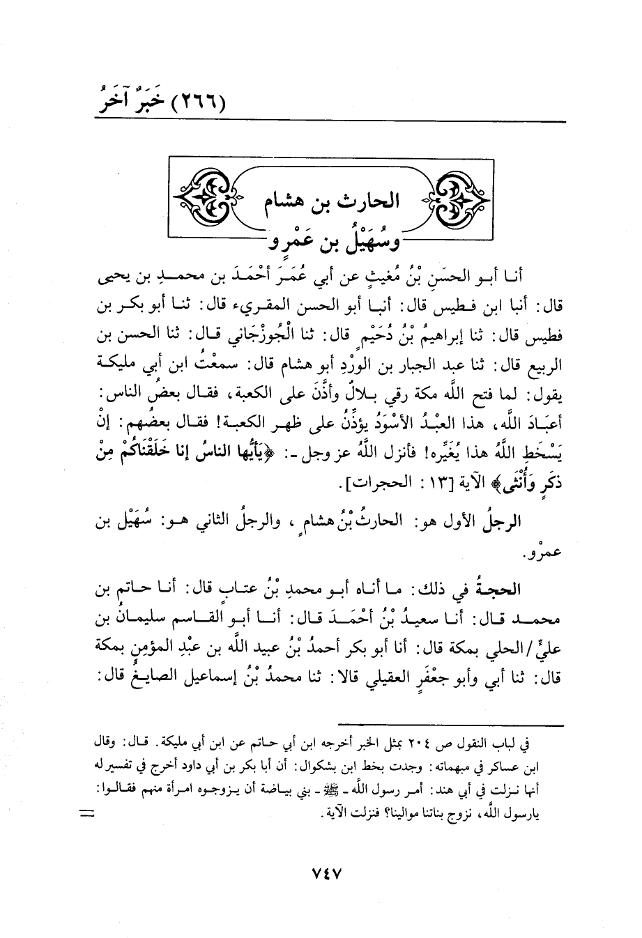 وَقَرَأْتُ عَلَى أَبِي مُحَمَّدِ بْنِ عَتَّابٍ أَخْبَرَكَ أَبُوكَ رَحِمَهُ اللَّهُ فَأَقَرَّ بِهِ قَالَ أنبا عَبْدُ الرَّحْمَنِ بْنُ أَحْمَدَ قَالَ ثَنَا إِسْمَاعِيلُ بْنُ بَدْرٍ قَالَ ثَنَا الْخُشَنِيُّ قَالَ ثَنَا سَلَمَةَ بْنِ شَبِيبٍ قَالَ ثَنَا عبد الرَّزَّاق عَنِ ابْنِ عُيَيْنَة عَنْ إِسْمَاعِيلَ عَنِ الشَّعْبِيِّ قَالَ نَزَلْتُ فِي عَلِيٍّ وَعَبَّاسٍ تَكَلَّمَا فِي ذَلِك