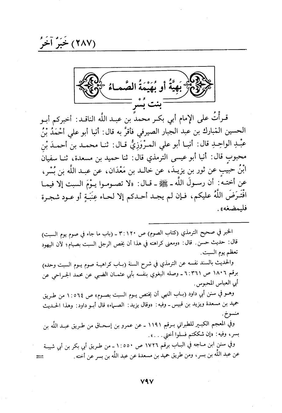 كَمَا أنبا أَبُو مُحَمَّدِ بْنُ يَرْبُوعٍ فِيمَا رَفَعَهُ إِلَيَّ مِنْ حَدِيثه قَالَ أنبا أَحْمد ابْن أَنَسٍ أنبا أَبُو ذَرٍّ وَعَبْدُ بْنُ أَحْمَدَ بْنِ مُحَمَّدٍ قَالَا ثَنَا الْحسن ابْن أَحْمَدَ الْمَخْلَدِيُّ إِمْلاءً قَالَ ثَنَا أَبُو نُعَيْمٍ عَبْدُ الْمَلِكِ بْنُ مُحَمَّدُ بْنُ عَلِيٍّ قَالَ ثَنَا الْحَسَنُ بْنُ مُحَمَّدِ بْنِ الصَّبَّاحِ الزَّعْفَرَانِيُّ قَالَ ثَنَا عُبَيْدَةُ بْنُ حُمَيْدٍ قَالَ حَدَّثَنِي أَبُو الزَّعْرَاءِ عَن الأَحْوَصُ عَنْ أَبِيهِ مَالِكِ بْنِ نَضْلَةَ قَالَ قَالَ رَسُولُ اللَّهِ صَلَّى اللَّهُ عَلَيْهِ وَسَلَّمَ الأَيْدِي ثَلاثَةٌ فَيَدُ اللَّهِ الْعُلْيَا وَيَدُ الْمُعْطِي الَّتِي تَلِيهَا وَيَدُ السَّائِلِ السُّفْلَى وَأَعْطِ الْفَضْلَ وَلا تَعْجَزْ عَن نَفسك