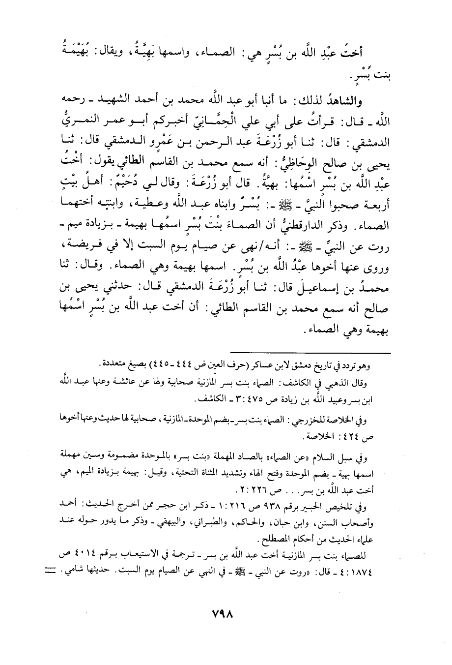 قَرَأْتُ عَلَى الإِمَامِ أَبِي بَكْرٍ مُحَمَّدِ بْنِ عَبْدِ اللَّهِ النَّاقِدِ أَخْبَرَكُمْ أَبُو الْحُسَيْنِ الْمُبَارَكِ بْنُ عَبْدِ الْجَبَّارِ الصَّيْرَفِيُّ فَأَقَرَّ بِهِ قَالَ أنبا أَبُو عَلِيِّ أَحْمَدُ بْنُ عَبْدِ الْوَاحِدِ قَالَ أنبا أَبُو عَلِيٍّ الْمَرْوَزِيُّ قَالَ ثَنَا مُحَمَّدُ بْنُ أَحْمَدَ بْنِ مَحْبُوبٍ قَالَ أنبا أَبُو عِيسَى التِّرْمِذِيُّ قَالَ ثَنَا حُمَيْدُ بْنُ مسْعدَة ثَنَا سُفْيَان ابْن حَبِيبٍ عَنْ ثَوْرِ بْنِ يَزِيدَ عَنْ خَالِدِ بْنِ مَعْدَانَ عَنْ عَبْدِ اللَّهِ بْنِ بُسْرٍ عَنْ أُخْتِهِ أَنَّ رَسُولَ اللَّهِ صَلَّى اللَّهُ عَلَيْهِ وَسَلَّمَ قَالَ لَا تَصُومُوا يَوْمَ السَّبْتِ إِلا فِيمَا افْتَرَضَ اللَّهُ عَلَيْكُمْ فَإِنْ لَمْ يَجِدْ أَحَدُكُمْ إِلا لِحَاءَ عِنَبَةٍ أَو عود شَجَرَة فليمضغه