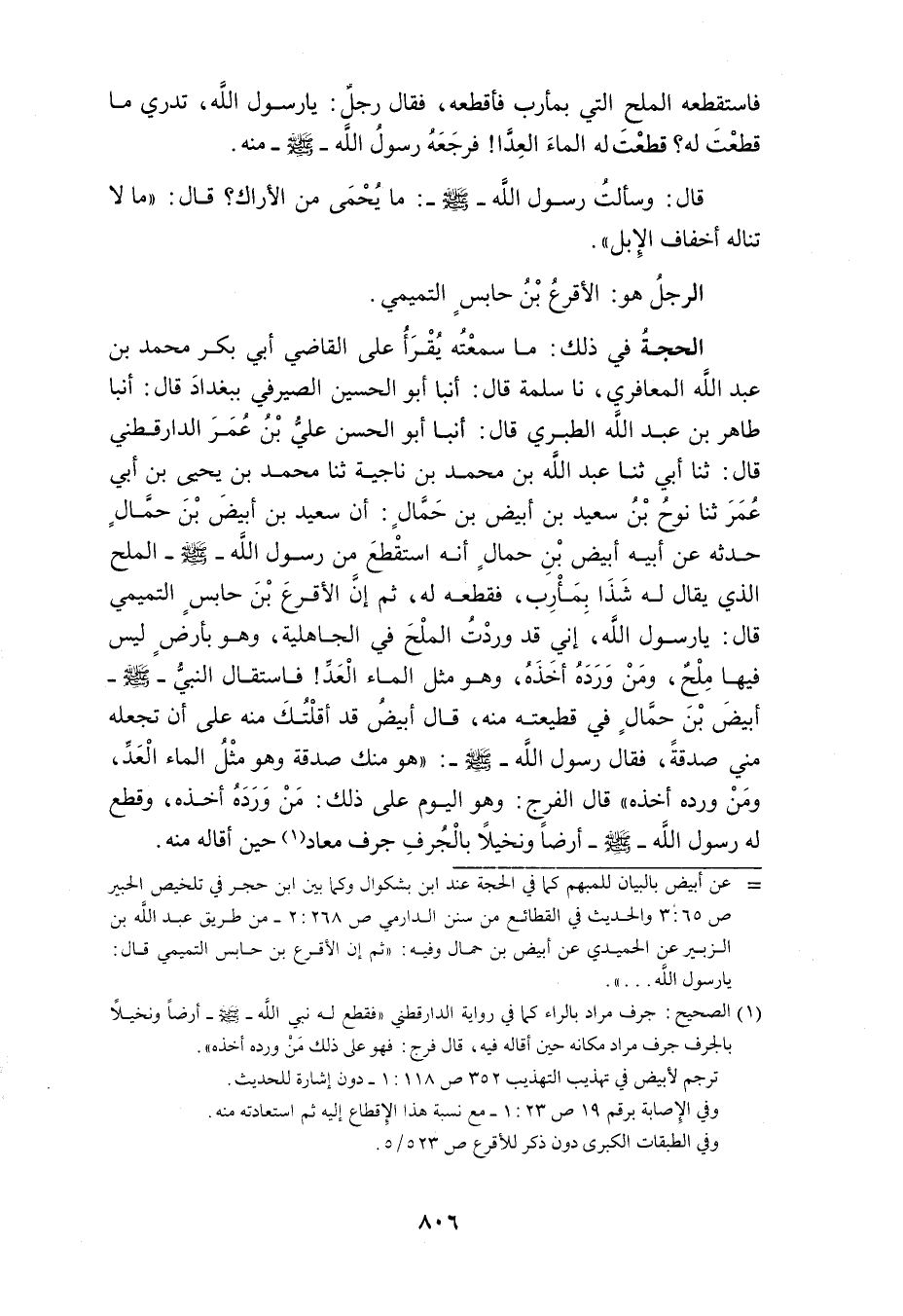 وَأنبا أَبُو عَلِيٍّ حُسَيْنُ بْنُ مُحَمَّدٍ النَّاقِدُ فِي كِتَابٍ إِلَيَّ بِخَطِّهِ قَالَ أَنْبَأَ عَبْدُ الْوَاحِدِ بْنُ عَلِيٍّ الْعَلافُ قَالَ أنبا عَلِيُّ بْنُ أَحْمَدَ الْعَلافُ قَالَ أنبا عَبْدُ الْبَاقِي بْنُ قَانِعٍ قَالَ ثَنَا أَحْمَدُ بْنُ عَلِيٍّ الْخَرَّازُ وَمُحَمَّدُ بْنُ الْعَبَّاسِ قَالا ثَنَا سُرَيْجُ بْنُ النُّعْمَانِ ثَنَا أَبُو عَمْرٍو مُحَمَّدُ بْنُ يَحْيَى بْنِ قَيْسٍ الْمَازِنِيُّ قَالَ سَمِعْتُ يَحْيَى بْنَ قَيْسٍ يَذْكُرُ عَنْ ثُمَامَةَ بْنِ شَرَاحِيلَ عَنْ سُمَيِّ بْنِ قَيْسٍ عَنْ شَهْرٍ عَنْ أَبْيَضَ بْنِ حَمَّالٍ أَنَّهُ قَعَدَ إِلَى رَسُولِ اللَّهِ صَلَّى اللَّهُ عَلَيْهِ وَسلم