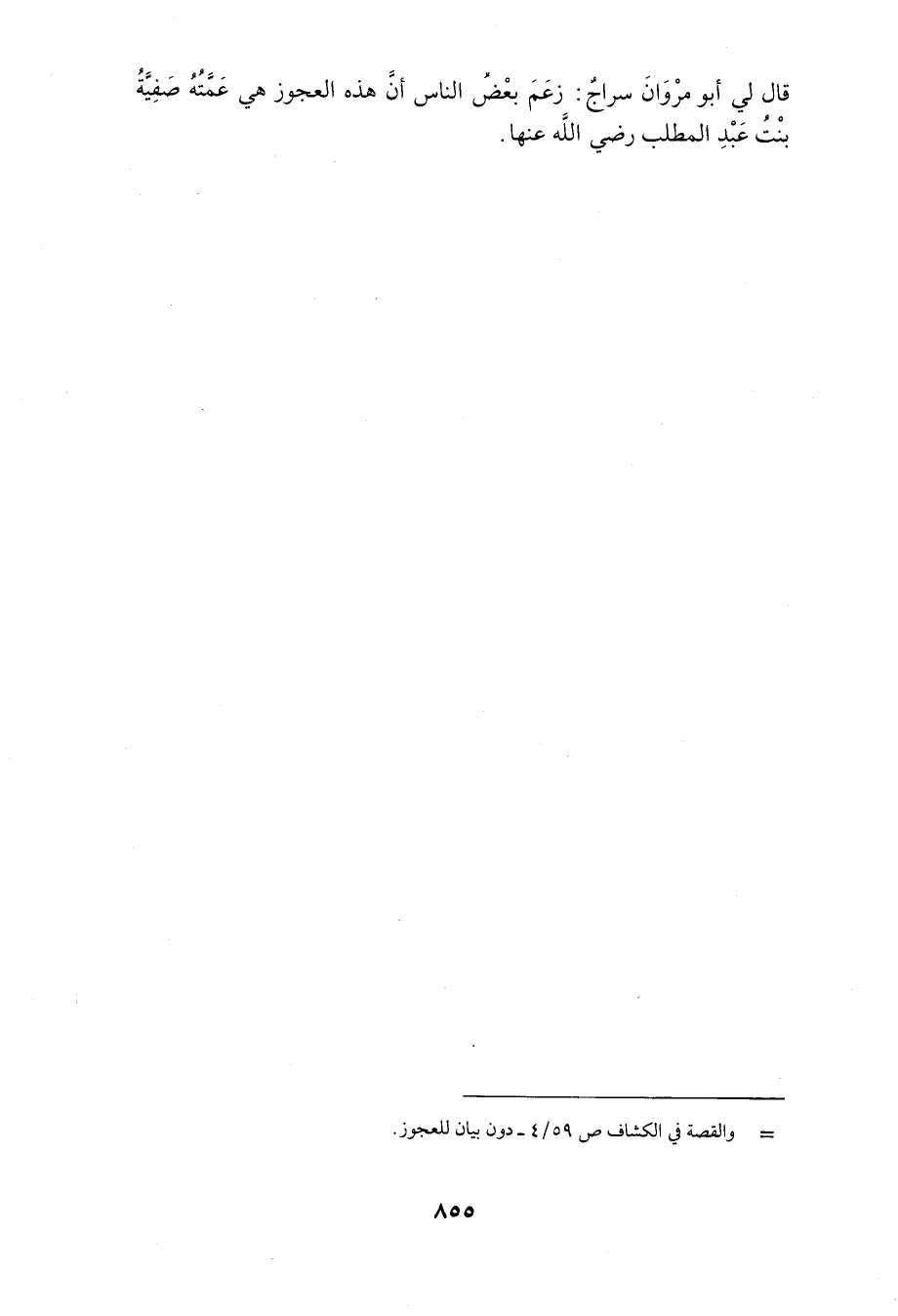 الْعَجُوز الْمَذْكُورَةُ فِي هَذَا الْحَدِيثِ هِيَ عمَّة النَّبِي صَلَّى اللَّهُ عَلَيْهِ وَسَلَّمَ صَفِيَّة بنت عبد الْمطلب رَضِي اللَّه عَنْهَا