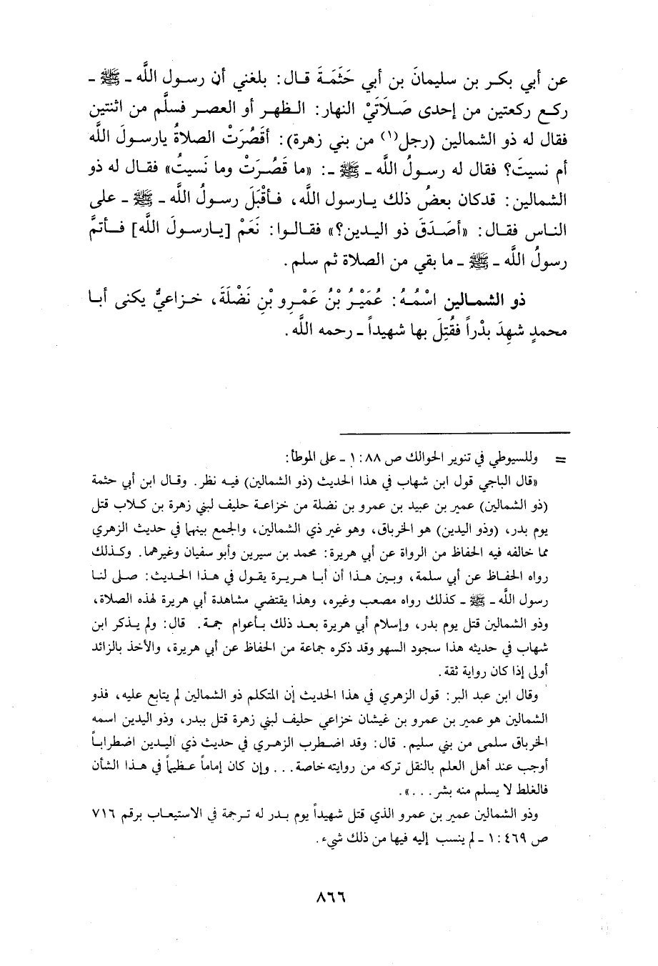 عُمَيْر بن عبد عَمْرو ابْن نَضْلَةَ ذُو الشِّمَالَيْنِ