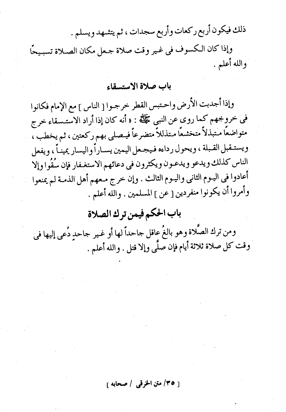 وإذا أجدبت الأرض واحتبس القطر خرجوا مع الإمام فكانوا في خروجهم كما روي عن النبي صلى الله عليه وسلم "أنه كان إذا أراد الاستسقاء خرج متواضعا متبذلا متخشعا متذللا متضرعا فيصلي بهم ركعتين ثم يخطب ويستقبل القبلة ويحول رداءه فيجعل اليمين يسارا واليسار يمينا ويفعل الناس كذلك ويدعو ويدعون ويكثرون في دعائهم الاستغفار فإن سقوا وإلا أعادوا في اليوم الثاني واليوم الثالث وإن خرج معهم أهل الذمة لم يمنعوا وأمروا أن يكونوا منفردين من المسلمين والله أعلم.