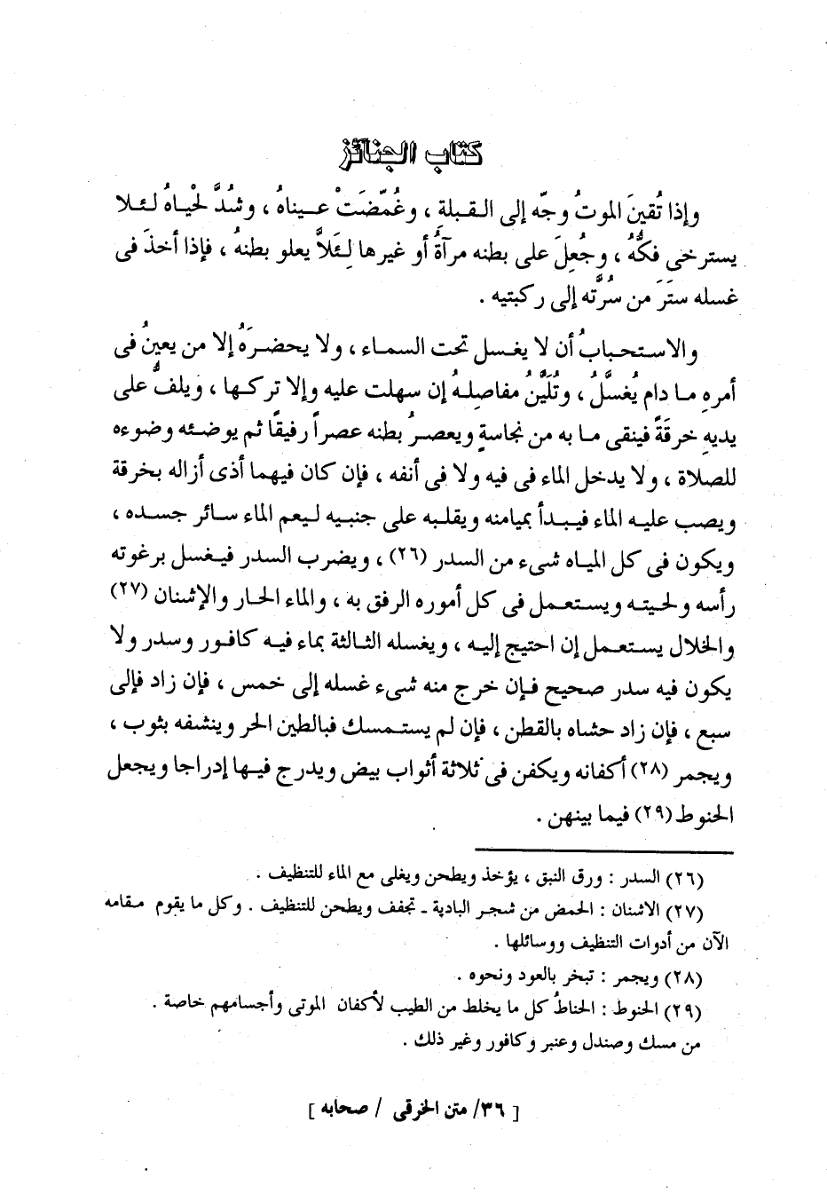 4 الحنوط: الحناط كل ما يخلط من الطيب لأكفان الموتى وأجسامهم خاصة. من مسك وصندل وعنبر وكافور وغير ذلك.