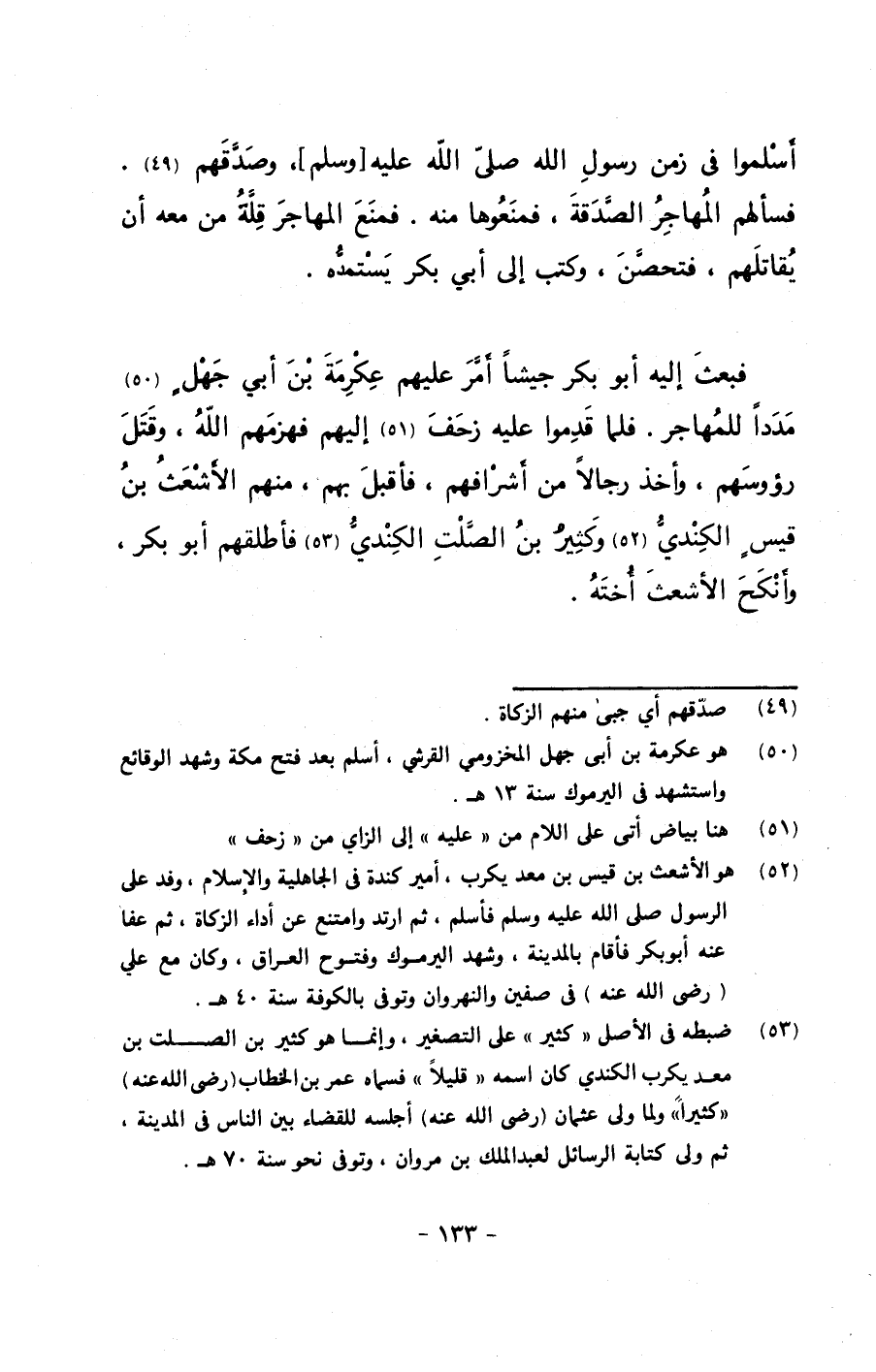 فبعث إليه أبو بكر جيشاً أمر عليهم عكرمة بن أبي جهلٍ مدداً للمهاجر. فلما قدموا عليه زحف إليهم فهزمهم الله، وقتل رؤوسهم, وأخذ رجالاً من أشرافهم، فأقبل بهم، منهم الأشعث بن قيسٍ الكندي وكثير بن الصلت الكندي فأطلقهم أبو بكر، وأنكح الأشعث أخته.