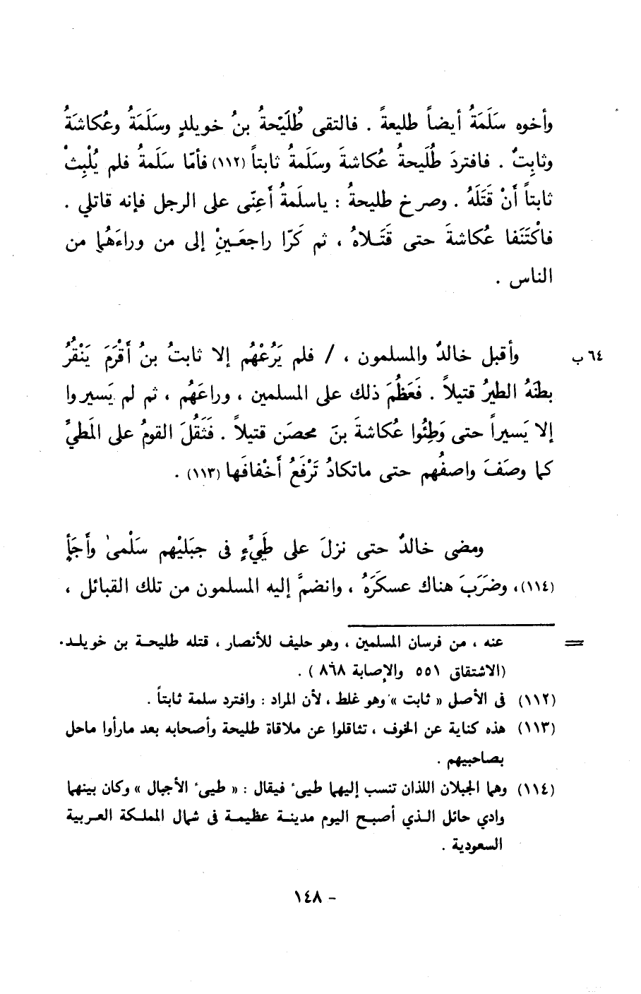 وأقبل خالدٌ والمسلمون، / فلم يرعهم إلا ثابت بن أقرم ينقر بطنه الطير قتيلاً. فعظم ذلك على المسلمين، وراعهم، ثم لم يسيروا إلا يسيراً حتى وطئوا عكاشة بن محصن قتيلاً. فثقل القوم على المطي كما وصف واصفهم حتى ما تكاد ترفع أخفافها.