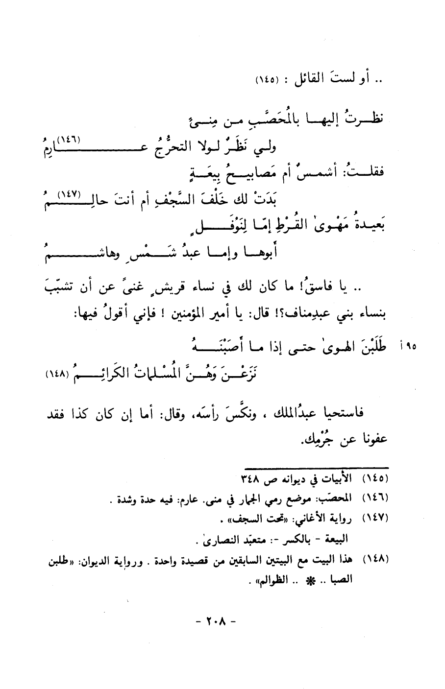 .. يا فاسق! ما كان لك في نساء قريشٍ غنىً عن أن تشبب بنساء بني عبد مناف؟! قال: يا أمير المؤمنين! فإني أقول فيها: