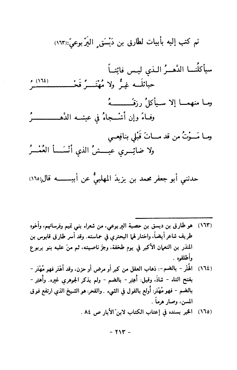 ثم كتب إليه بأبيات لطارق بن ديسقٍ اليربوعي: