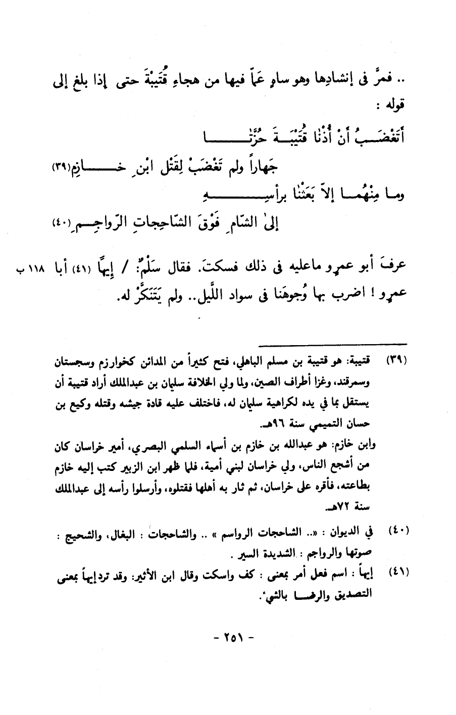.. فمر في إنشادها وهو ساهٍ عما فيها من هجاء قتيبة حتى إذا بلغ إلى قوله: